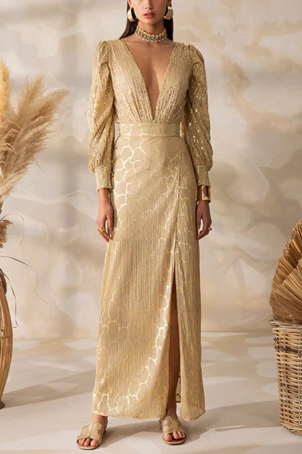 Essentially Chic Sequins V-neck Long Sleeve Bodysuit Top
